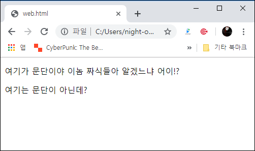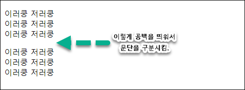 <p>태그로 구분된 문단 사이에는 일정 크기의 공백이 생김.