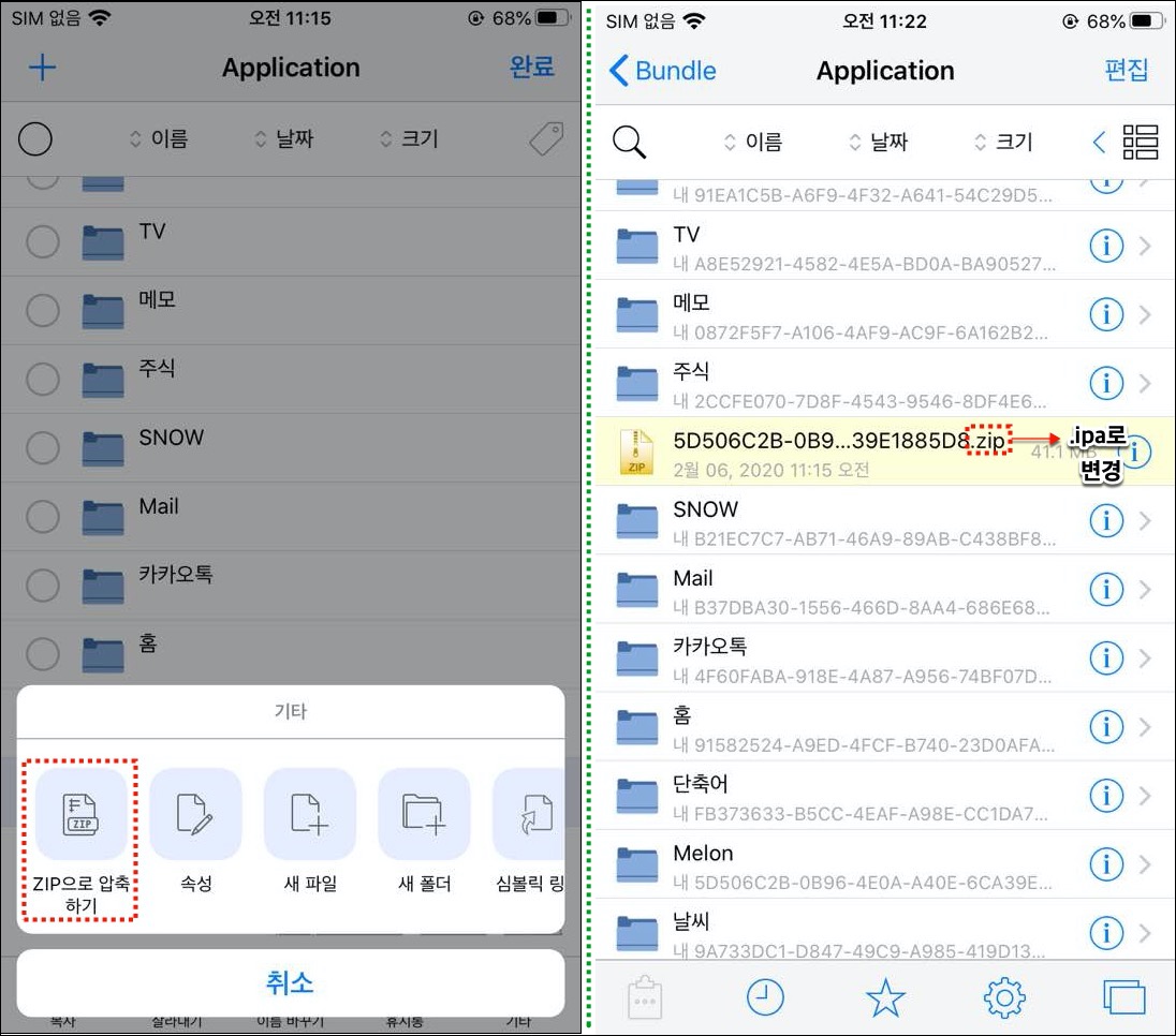 기기에서 .ipa 파일 추출하기 아이폰 앱 파일은 .ipa 인데 사실 .zip 형식임 따라서 1. /var/containers/Bundle/Application/ 경로에서 2. ls * 로 원하는 앱 찾고 3. 목표 앱 압축해서 확장자만 .ipa 로 바꿔주면 됨ㅋㅋㅋㅋ 사실 별도 툴도 필요없음; [fileza 이용] [설치] 1. apt.thebigboss.org/repofiles/cydia/debs2.0/filzafilemanager_3.3.2.deb 디바이스에 파일 다운받아서 dpkg -i deb파일로 설치해도 되지만, 2. cydia에 소스추가 : http://tigisoftware.com/cydia/ 후 fileza-64bit 바로 설치하는게 더 편함. 경로 이동 /var/containers/Bu..